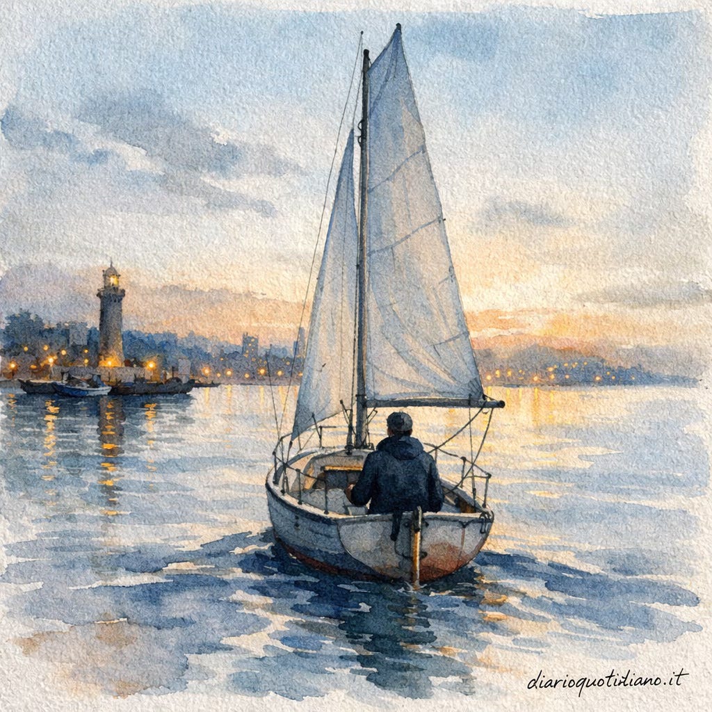 Lasciare il porto mentre la città dorme. Riflessioni sulla libertà e sul respiro del mare.